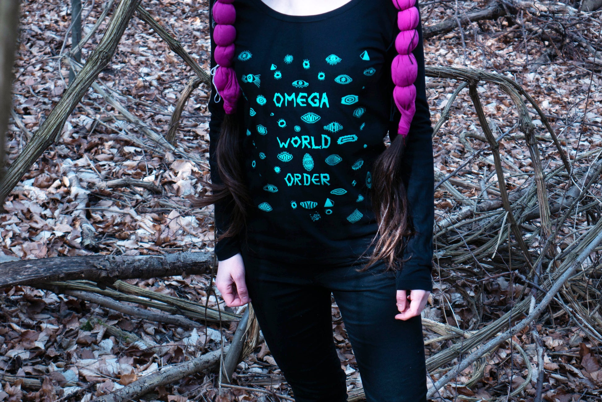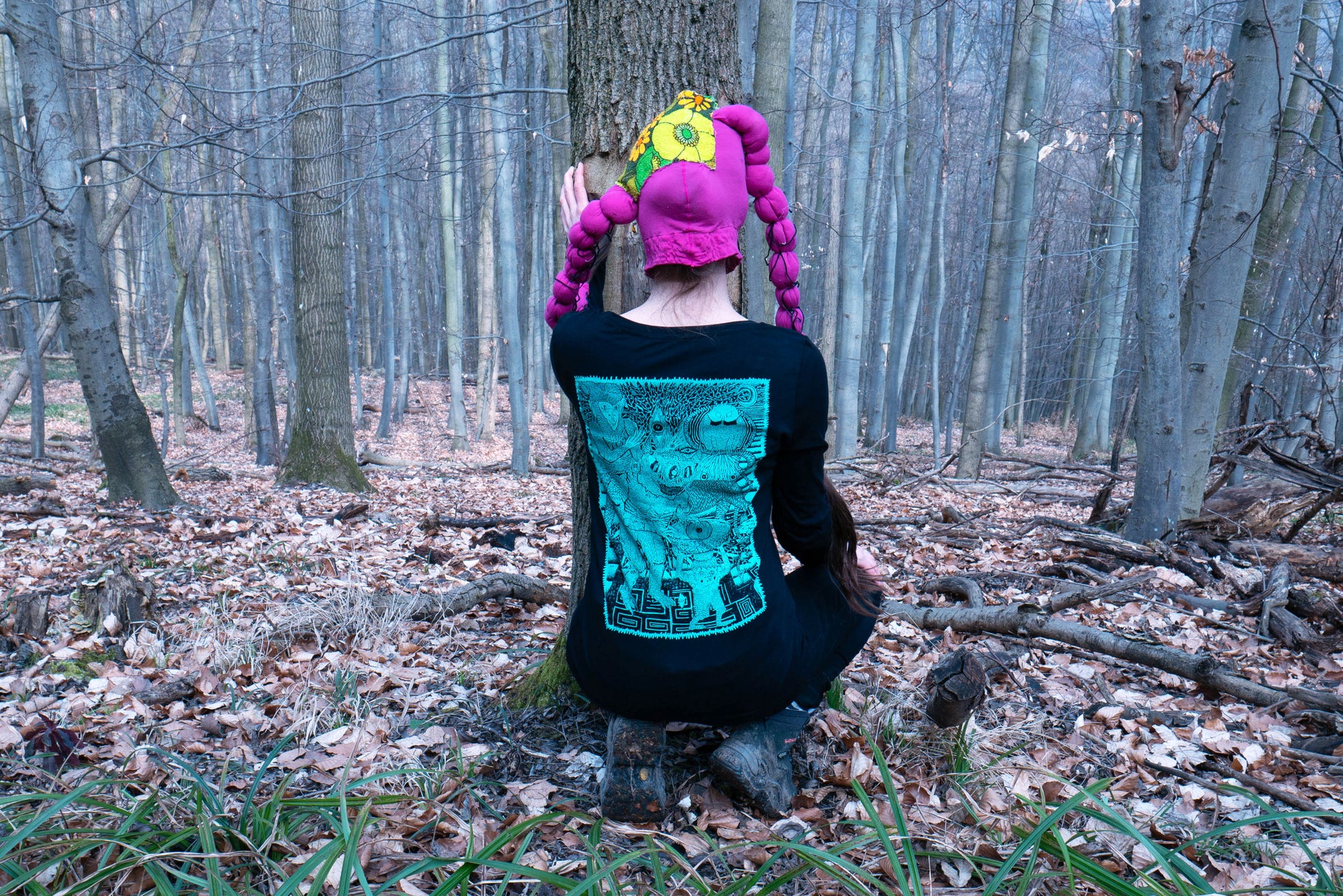Cotton longsleeve shirt (organic, fair, sustainable) with screenprints on front and back.