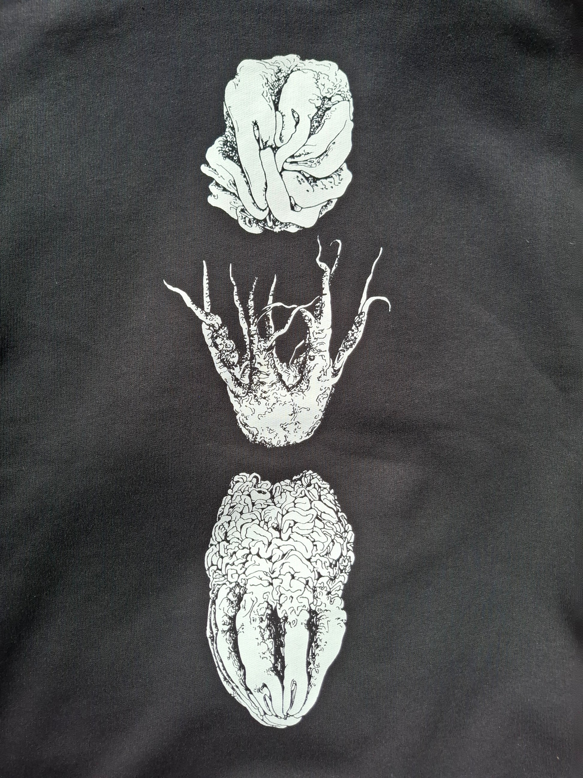 Cotton sweater (organic, fair, sustainable) with screenprint of a "Devil´s Finger" mushroom, aka the "oktopus stinkhorn" or clathrus archeri.
