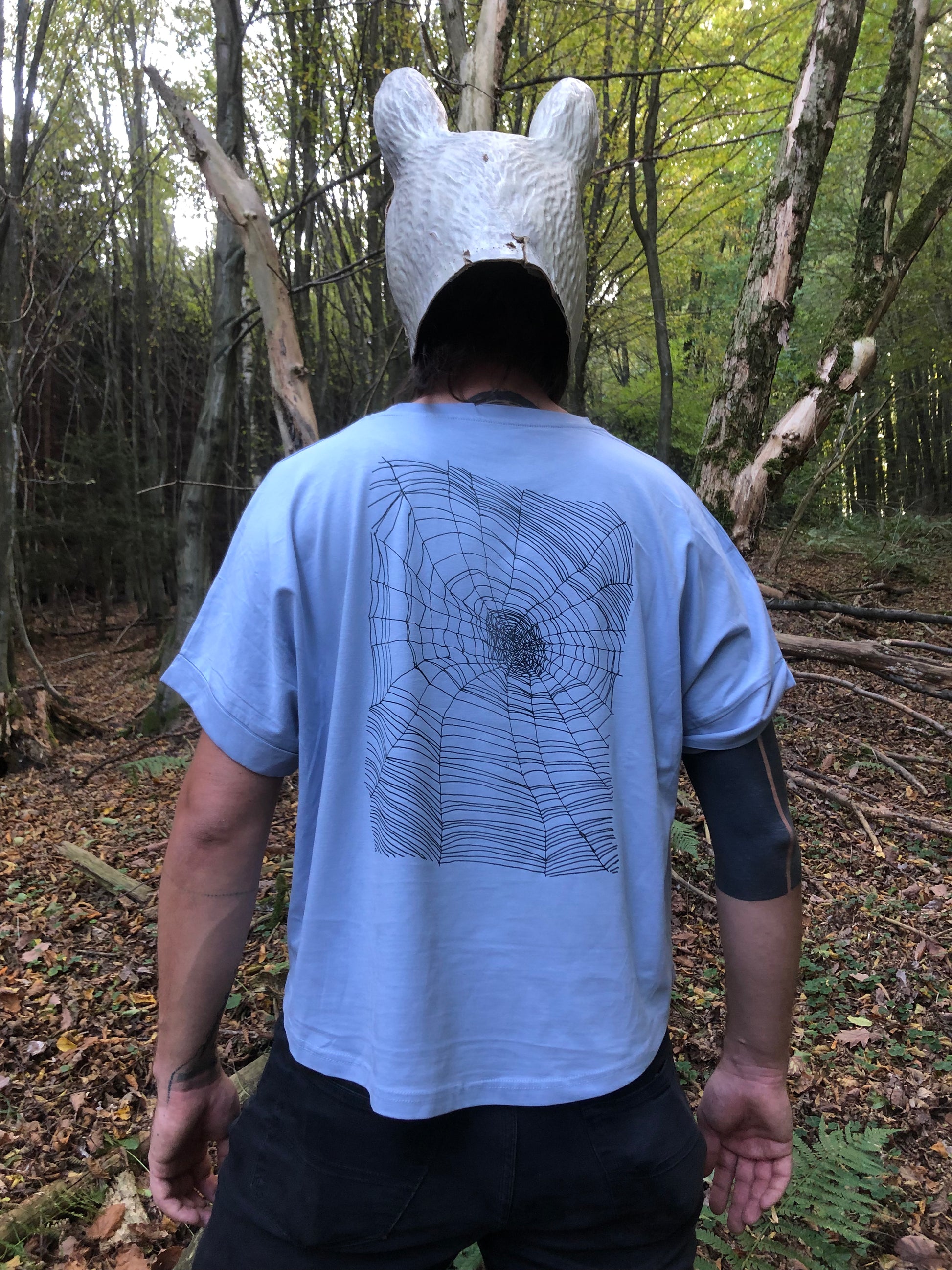 Cotton shirt (organic, fair, sustainable) with screen print of Aculepeira ceropegia or oak spider, an orb-weaving spider that belongs to the family Araneidae.